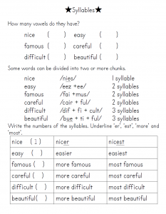 英検4級対策用の文法シートでは、Syllables-音節-の説明も入れることにしました。
